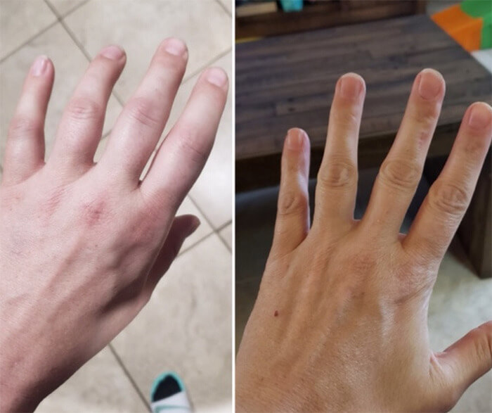 Po sunkios infekcinės ligos pastebėjau, kad mano ranka pradėjo labai išsipūsti. Tai mane labai neramino ir aš kreipiausi į specialistą. Tyrimas parodė, kad aš kenčia nuo toksinio alerginio artrito. Tiesą sakant, pirmą kartą išgirdau apie šią ligą. Kaip paaiškėjo, jis atsirado dėl medžiagų apykaitos sutrikimų infekcijos fone. Pagalvojau, kad tokią ranką turėsiu visą likusį gyvenimą. Buvau labai nusiminęs. Žinoma, mano žmona mane paskatino, kad mes kontroliuosime šią problemą. Kažkokiame forume skaičiau apie Nano Flex kremą ir užsisakiau, nes labai norėjau išbandyti. Rezultato tiesiog negaliu perteikti žodžiais! Tai kažkokia magija, nežinau, kaip tai aprašyti... is kremas man padėjo, ir tiesiog po pirmojo naudojimo. Džiaugiuosi kad mano ranka vėl atrodo sveika ir galiu ją normaliai judinti! tai mano rezultatas: